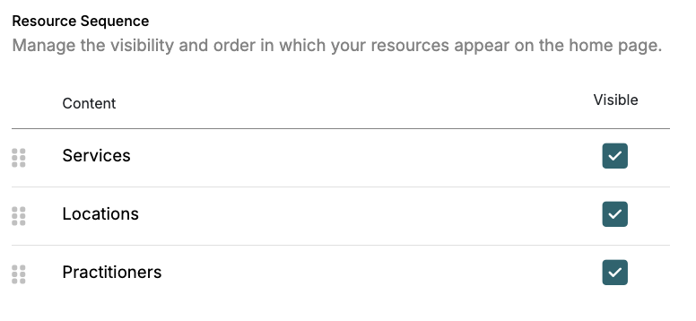 Arrange the order of resources like services, locations, and practitioners based on booking preference. You can choose card or list view for service display.