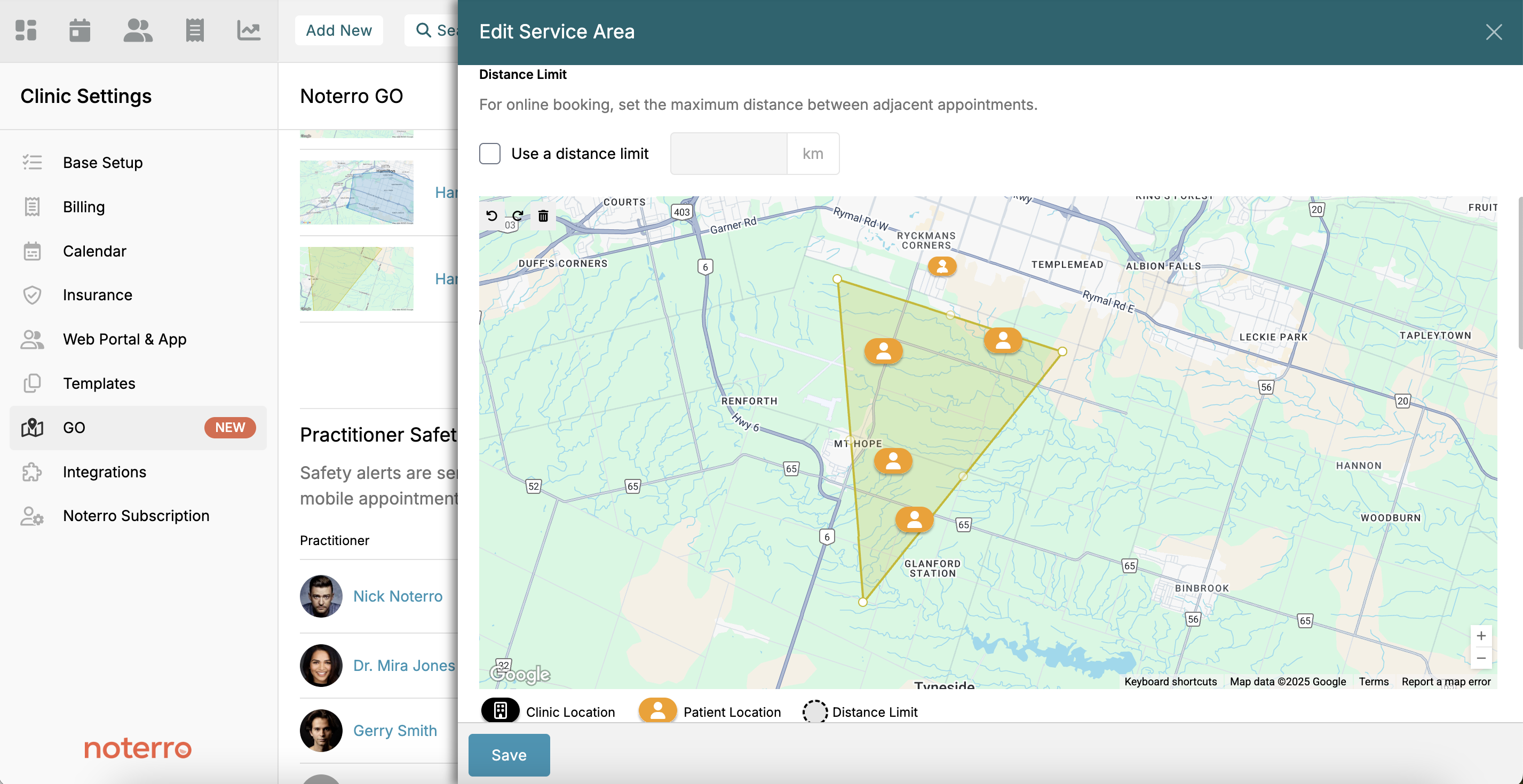 For mobile therapists who are constantly on the move, Noterro Go provides an efficient way to manage and offer services across different locations. This feature lets you update your service areas and manage appointment safety alerts to ensure smooth operations while working in various locations. By enabling Notal Go, you effectively control where and when to offer your services.